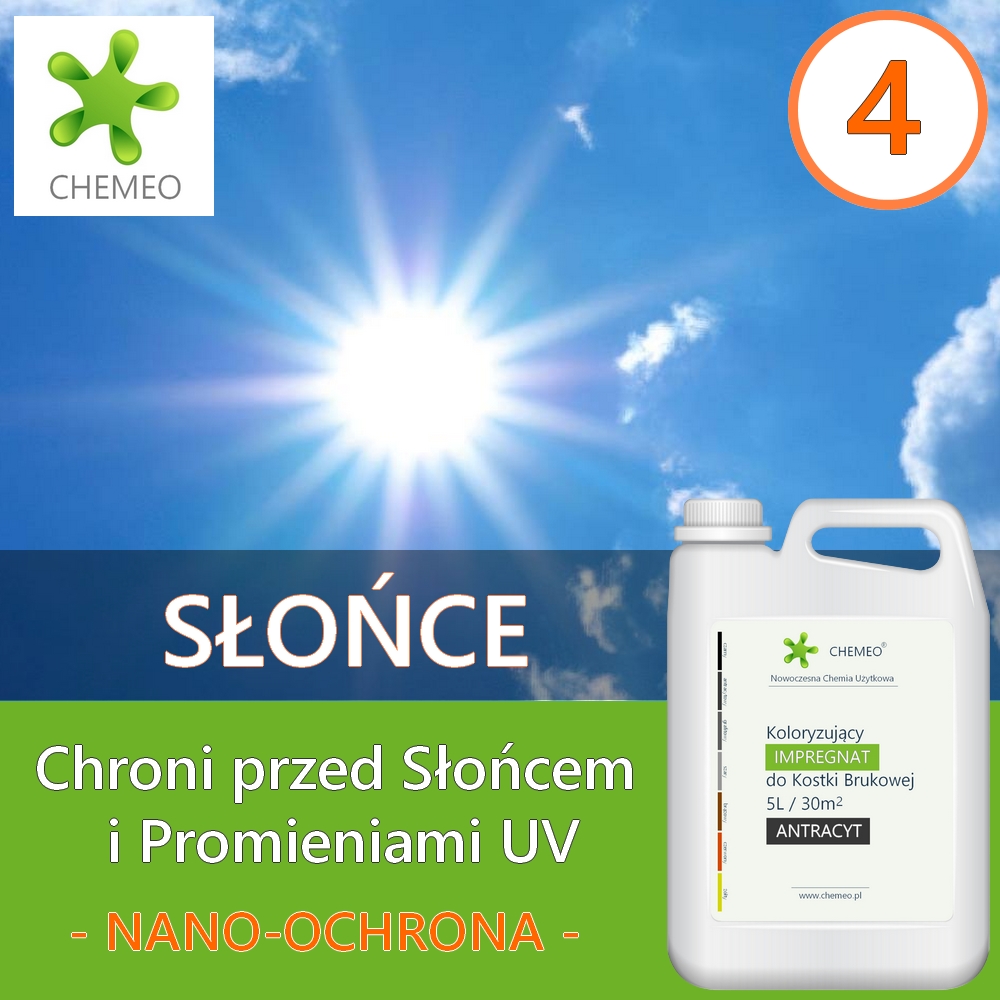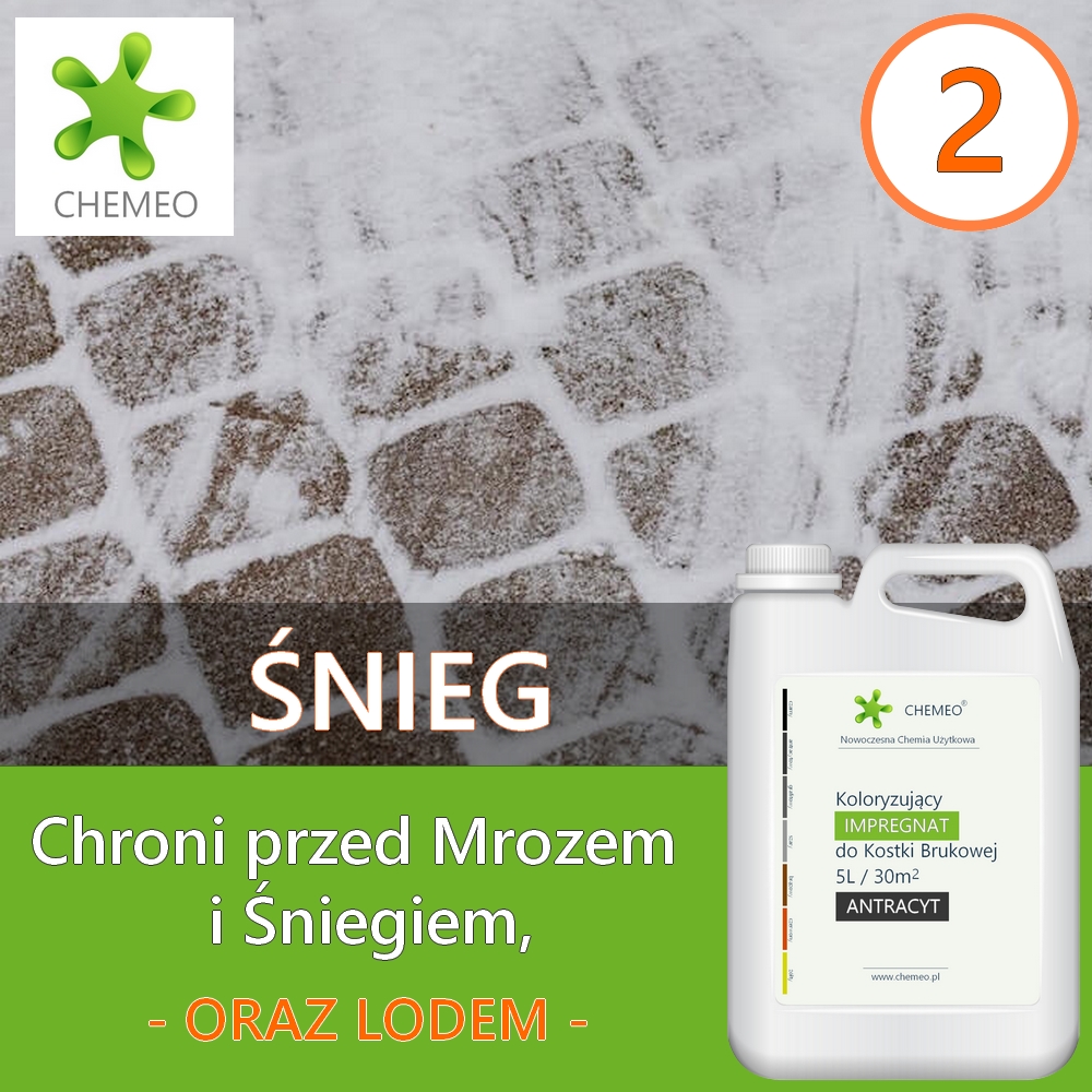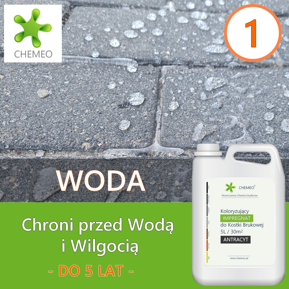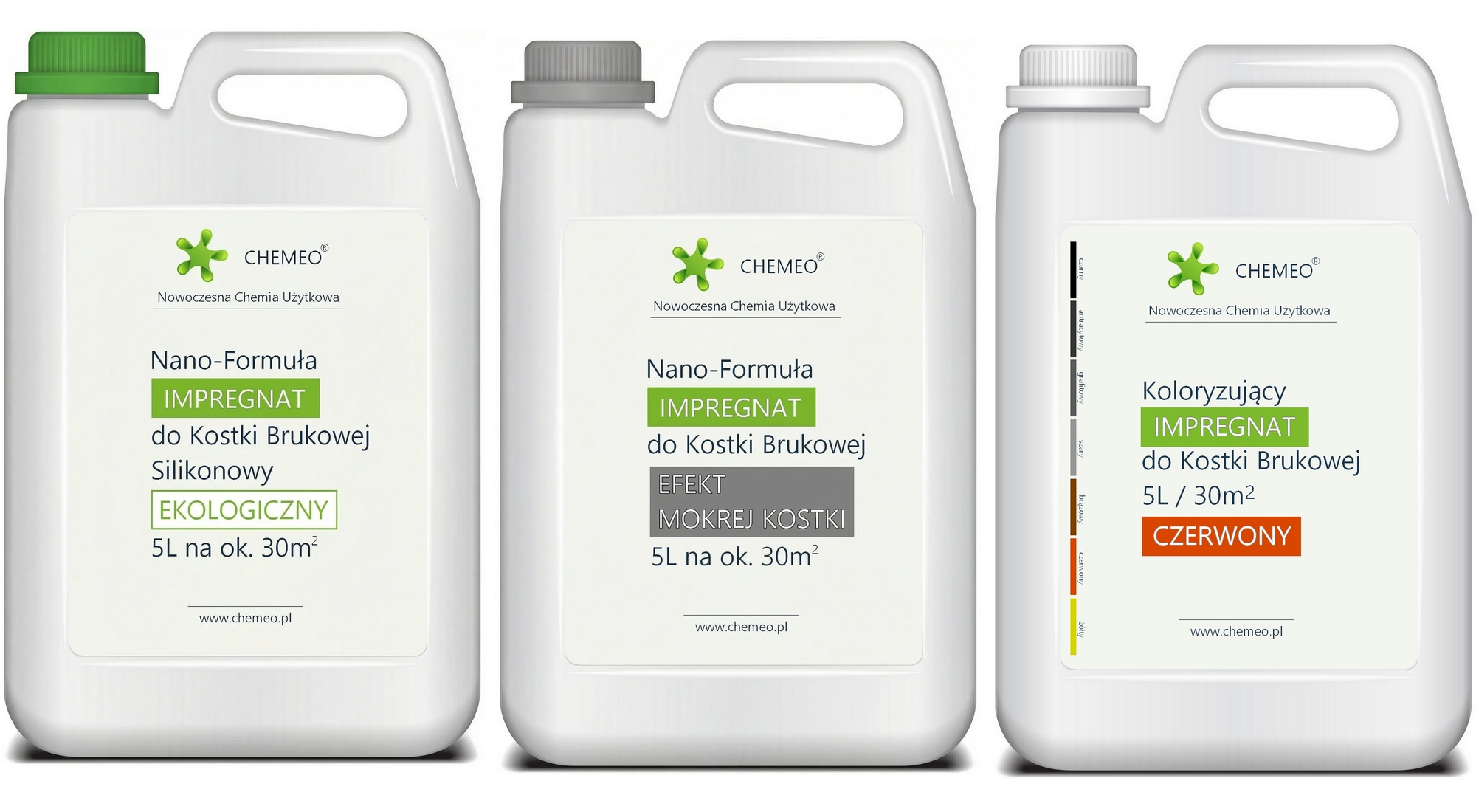 - Impregnat do kostki brukowej – Chroni przed: wodą, słońcem, mrozem, mchem i brudem, a także ułatwia czyszczenie zabezpieczonych powierzchni,