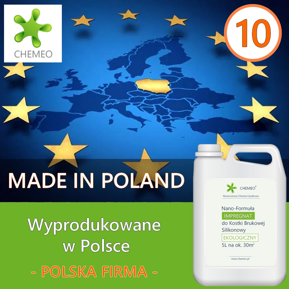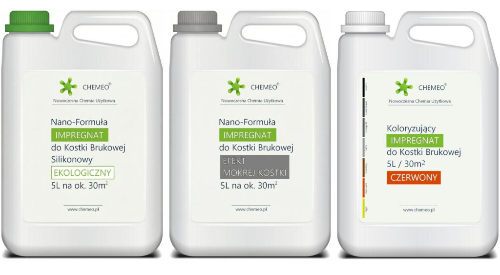 - Preparat do kostki brukowej – Chroni przed: wodą, słońcem, mrozem, mchem i brudem, a także ułatwia czyszczenie zabezpieczonych powierzchni,