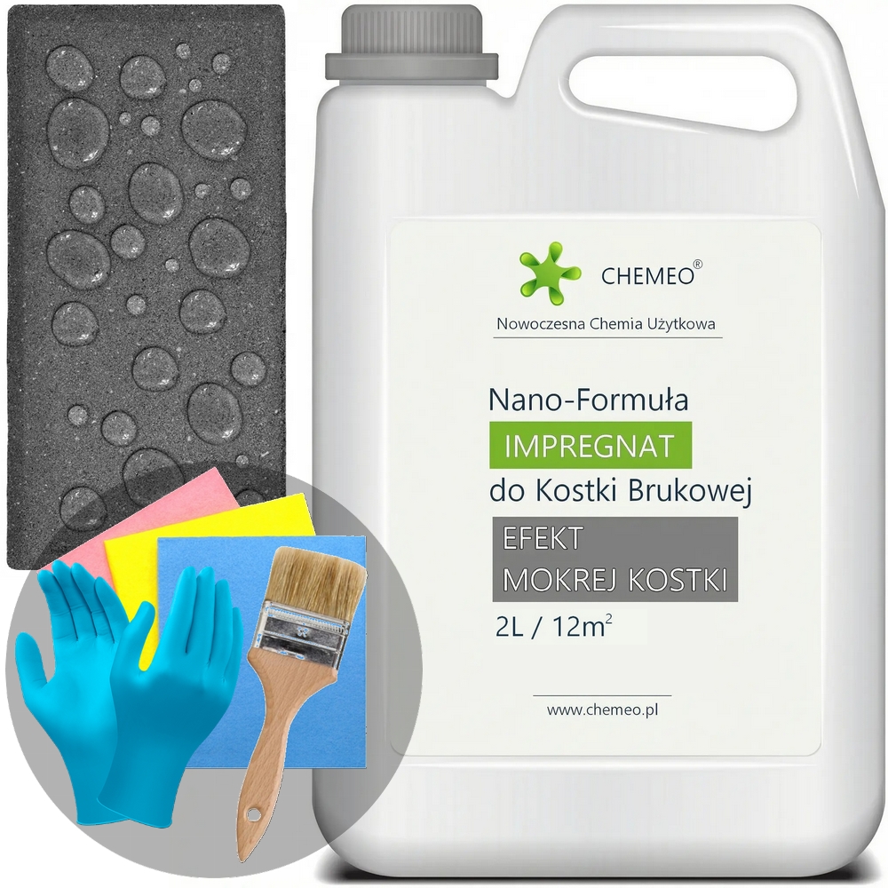 Silikonowy impregnat do kostki brukowej, nowoczesny produkt na bazie polimeru (silikonu) o doskonałych właściwościach, bezpieczny i nieszkodliwy, łatwy w użyciu. Doskonale chroni kostkę brukową przed czynnikami atmosferycznymi, brudem i mokroorganizmami (mech i porosty), wzmacnia strukturę betonu i wydłuża jego żywotność, tworzy „Efekt Mokrej Kostki”.