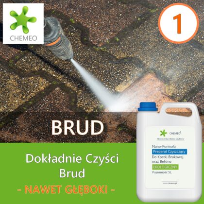 - Preparat doskonale usuwa z powierzchni: wszelkie zabrudzenia powierzchniowe, plamy, wykwity wapienne, mech i porosty,